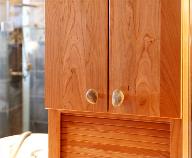 Before & After This Custom Bath was designed with an eye on aging in place - while looking particularly sharp doing it! The roll in shower is extra large, giving room for a wheelchair or caretaker. The appliance garage on the bathroom counter gives extra storage. |