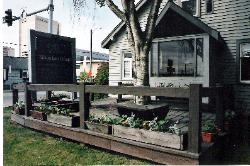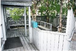 Before and After Downtown Office. We redesigned and rebuilt the front deck, and then helped choose a bold paint color to make this office space stand out. |