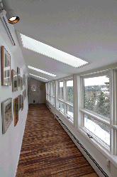 Sun Hallway - Addition designed to capture light - glass block wall halfway down hall allows natural light into bathroom |